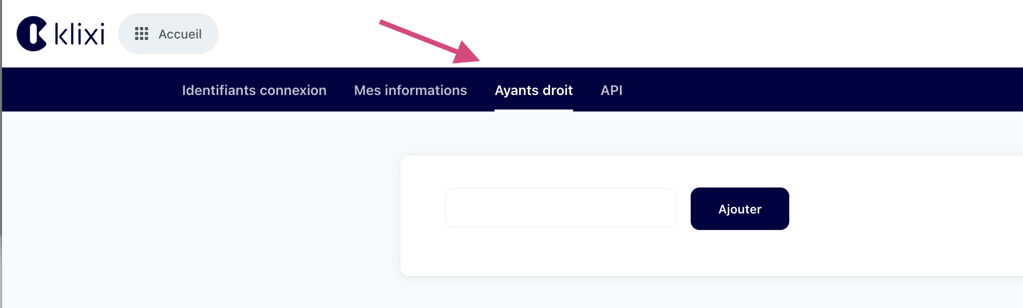Pour ajouter un nouvel utilisateur à votre interface Klixi, allez dans votre "compte"
