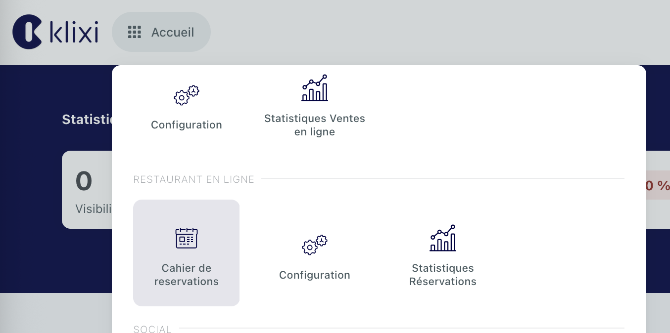 Pour cela, rendez-vous dans le menu " Restaurant en ligne " > " Cahier de réservation ".