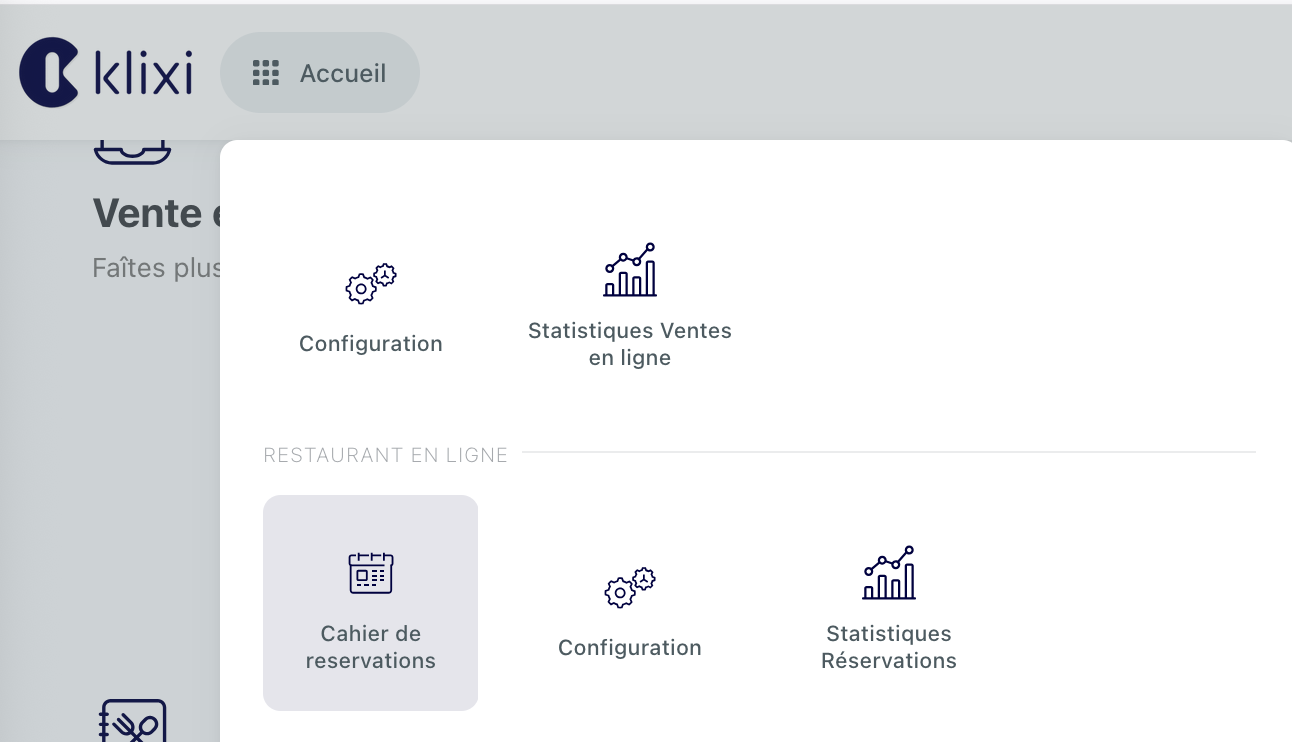 Pour mettre en place le plan de salle (option payante), allez dans le menu "cahier de réservations"