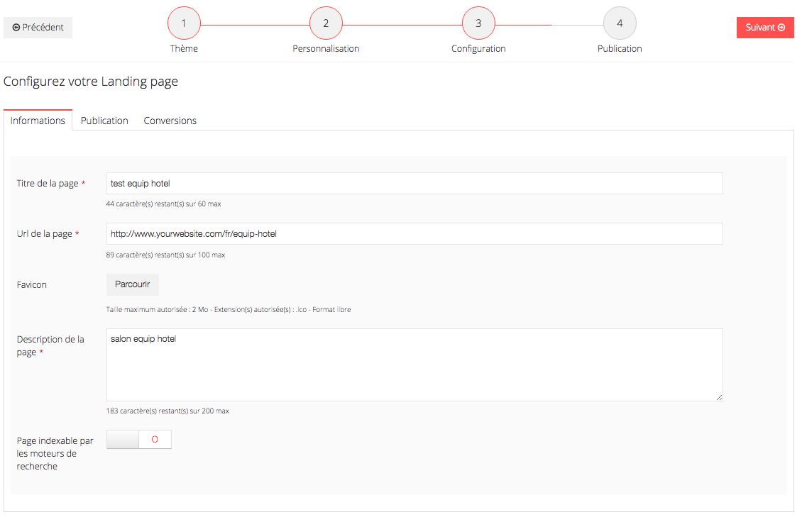 Etape 3 : Configurez votre landing page