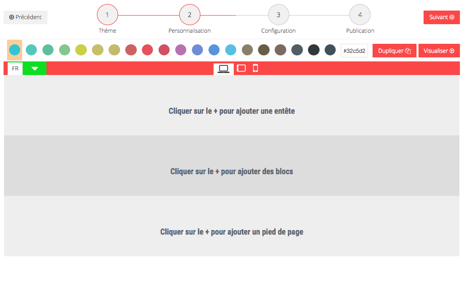 Une fois que votre landing page est prête, cliquez sur le bouton "suivant" en haut à droite pour l'enregistrer et passer à l'étape "configuration.