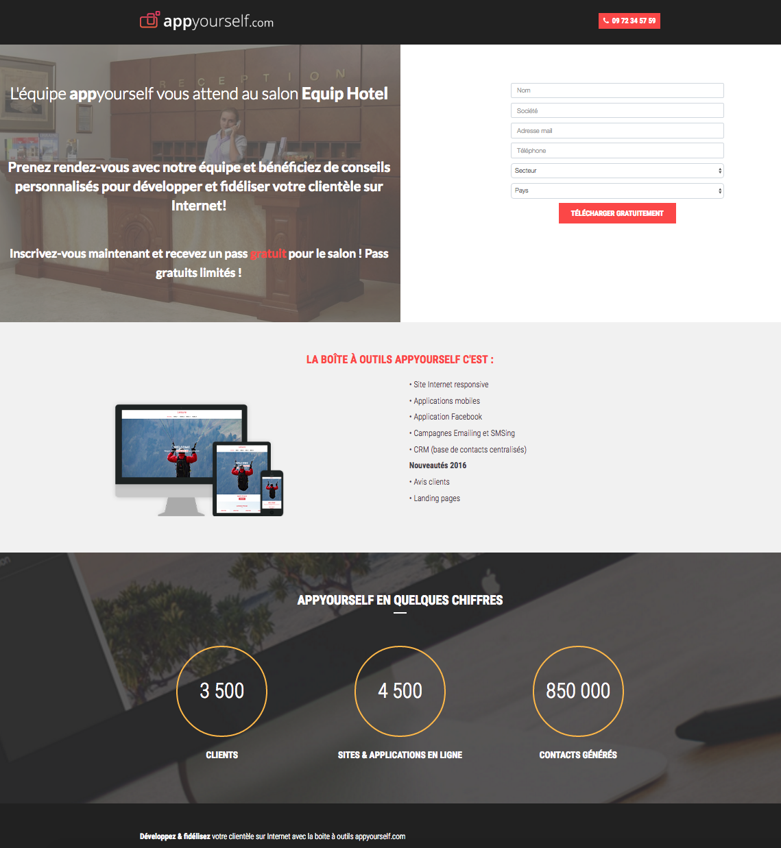 Voici un exemple de landing page fait par notre équipe pour inviter des clients à un salon :