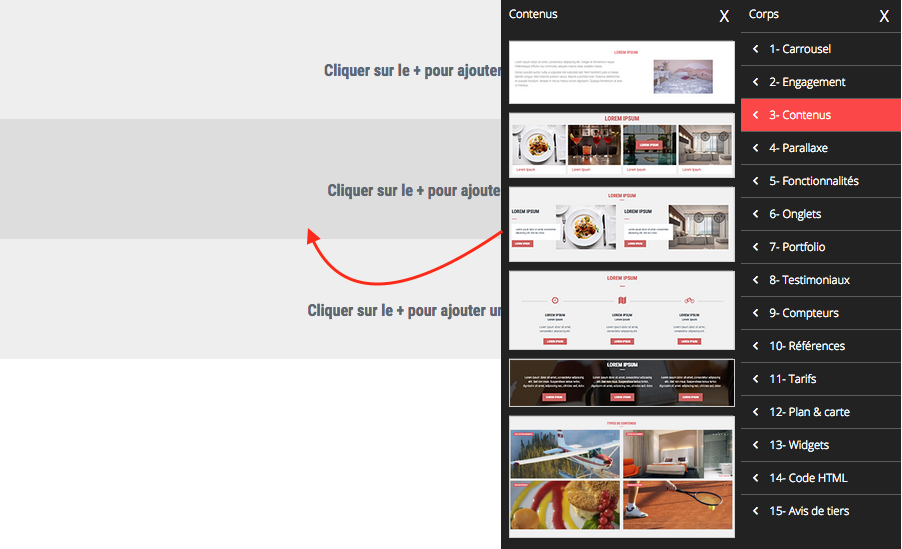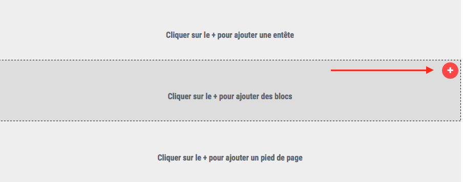 Passez votre souris sur une de ces 3 parties. Un bouton "+" va apparaitre sur la droite du bloc. Cliquez dessus !