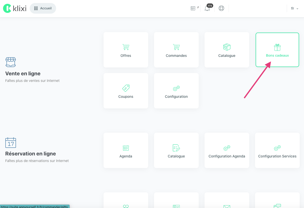 Pour faire une personnalisation globale de vos bons cadeaux, rendez-vous dans le menu "Vente en ligne" > "Bon cadeaux".
