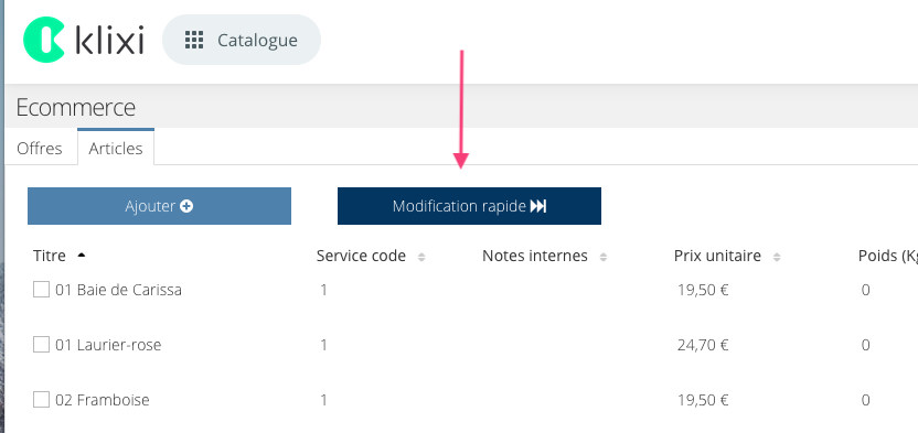 Dans les 2 cas, allez dans l'onglet "article" et cliquez sur le bouton "modification rapide"