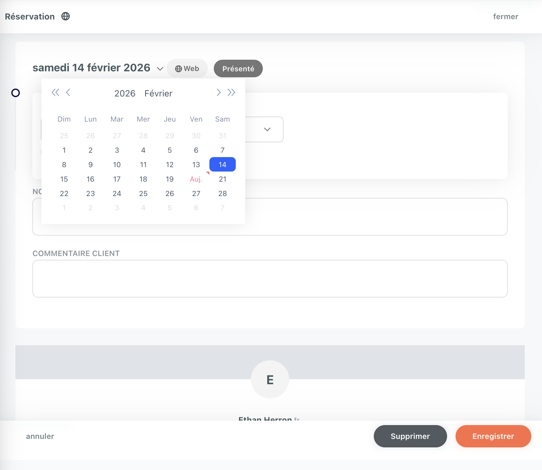 - cliquer sur la réservation pour accéder au détail de la réservation et le modifier