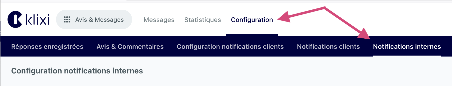Rendez-vous dans le menu "configuration" (toujours dans "avis & messages") puis dans "notifications internes.